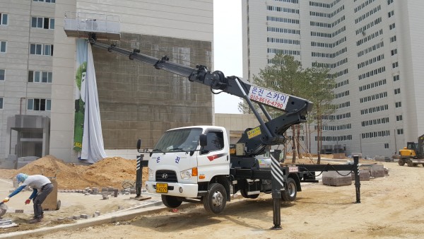 3.5톤스카이차 21M, 24M, 28M 있으며,3.5톤 같은경우 1~5층(아파트기준으로) 까지는 작업가능.
