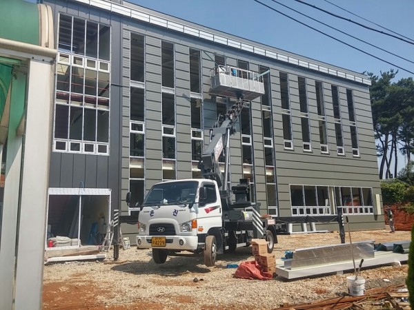 외벽공사,유리공사,간판공사,페인트공사,기타등등 공사벽면에 작업대를 최대한 가까이 밀착 시켜
